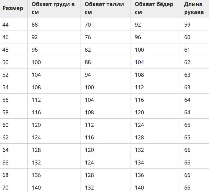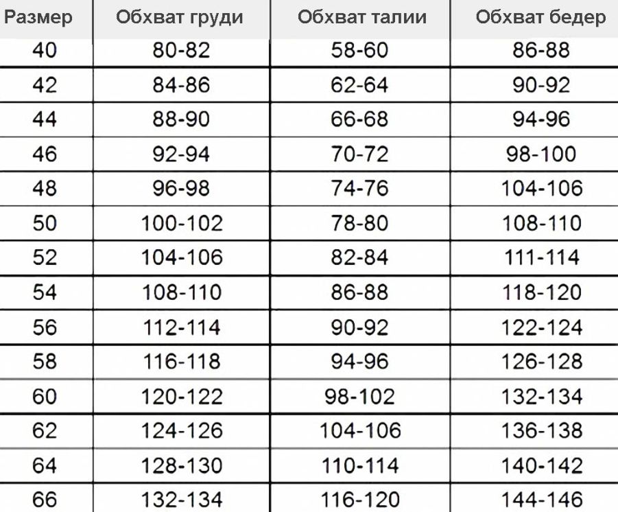 ТАБЛИЦЫ РАЗМЕРОВ СПЕЦОДЕЖДЫ