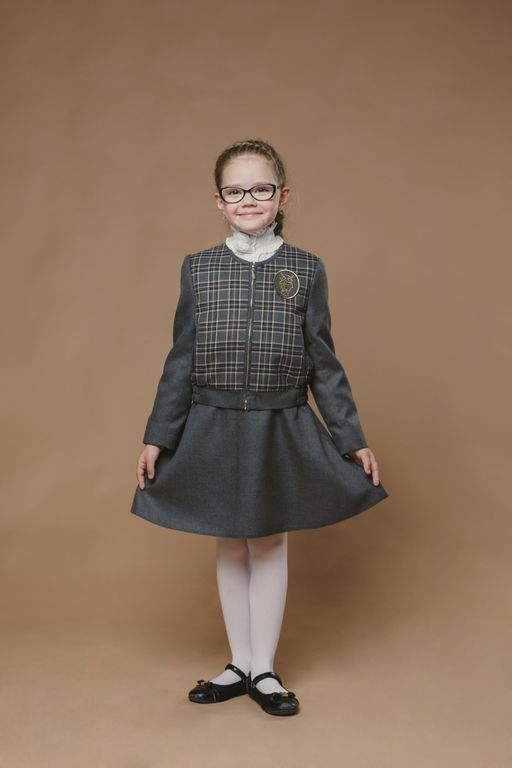 Костюм для девочки младшей и средней школьной возрастной группы из п/ш ткани, состоящего из жакета и юбки.